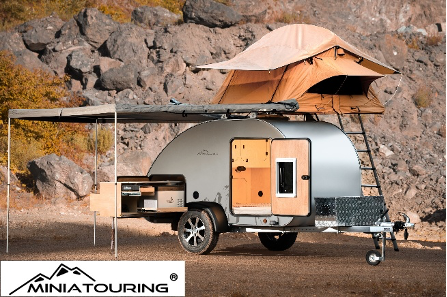 MINIATOURING: made in Germany. Een gerenommeerd producent van duurzame, compacte en hoogkwalitatieve mini- en compactcaravans. MINIATOURING is een avontuurlijke, dynamische reiscaravan. De caravans zijn uiterst sterk door de goed doordachte constructie. Zowel M22 als M24 zijn standaard voorzien van ALL-TERRAIN capaciteiten. Het dak is geschikt voor daktent, kano etc. Heel praktisch is de slide-out keuken.