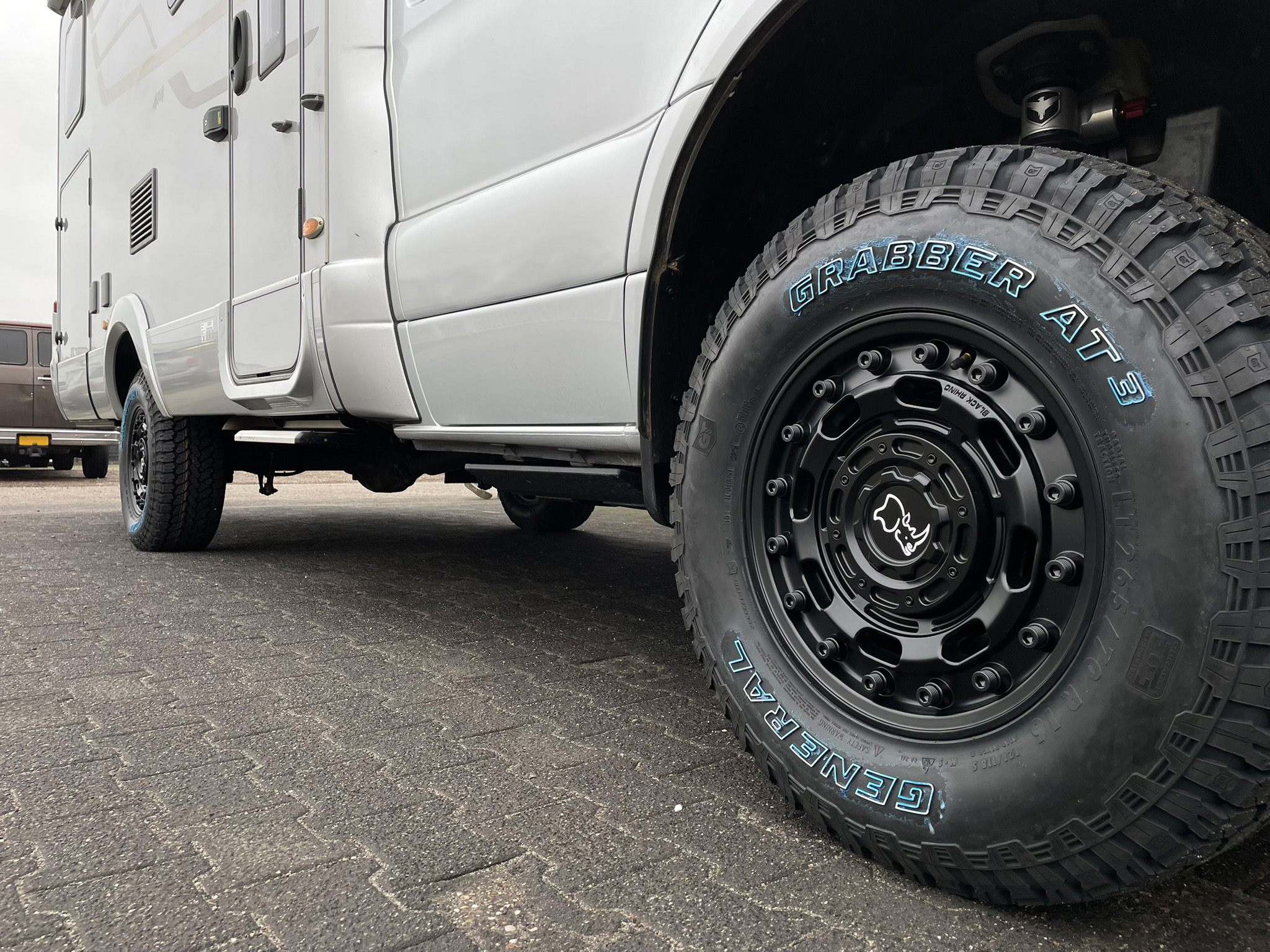 Deze Mercedes Sprinter 4×4 Camper staat nu op een nieuwe wielenset. De matzwarte 16ā Black Rhino Atlas velgen in combinatie met General Grabber AT3 banden zorgen niet alleen voor een stoere uitstraling, maar bieden ook extra grip en vertrouwen op bergpassen, onverharde wegen en afgelegen bestemmingen, www.carmar.nl